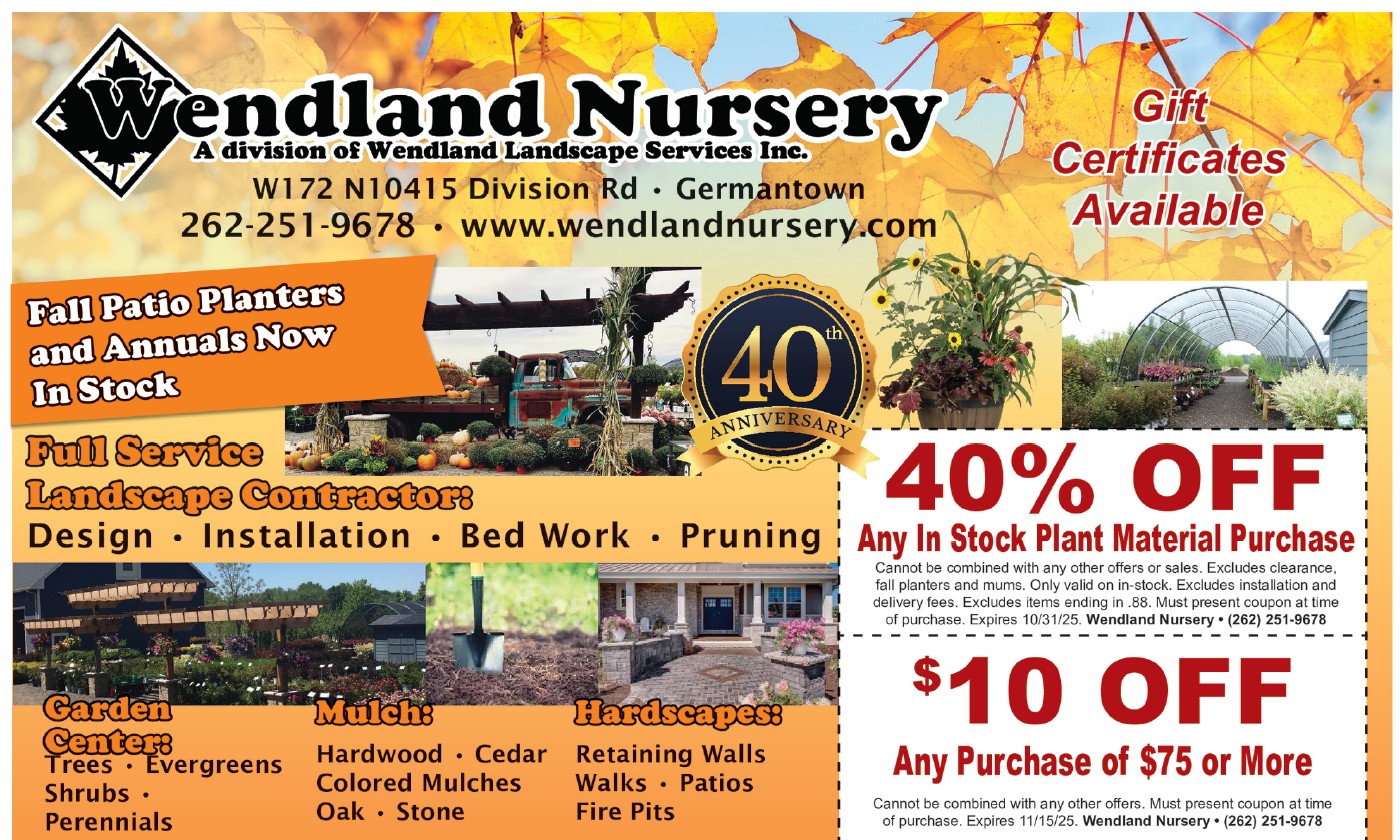 Stay up to date with current sales by “LIKING” us on Facebook @wendlandnursery or follow us on Instagram @wendland_nursery