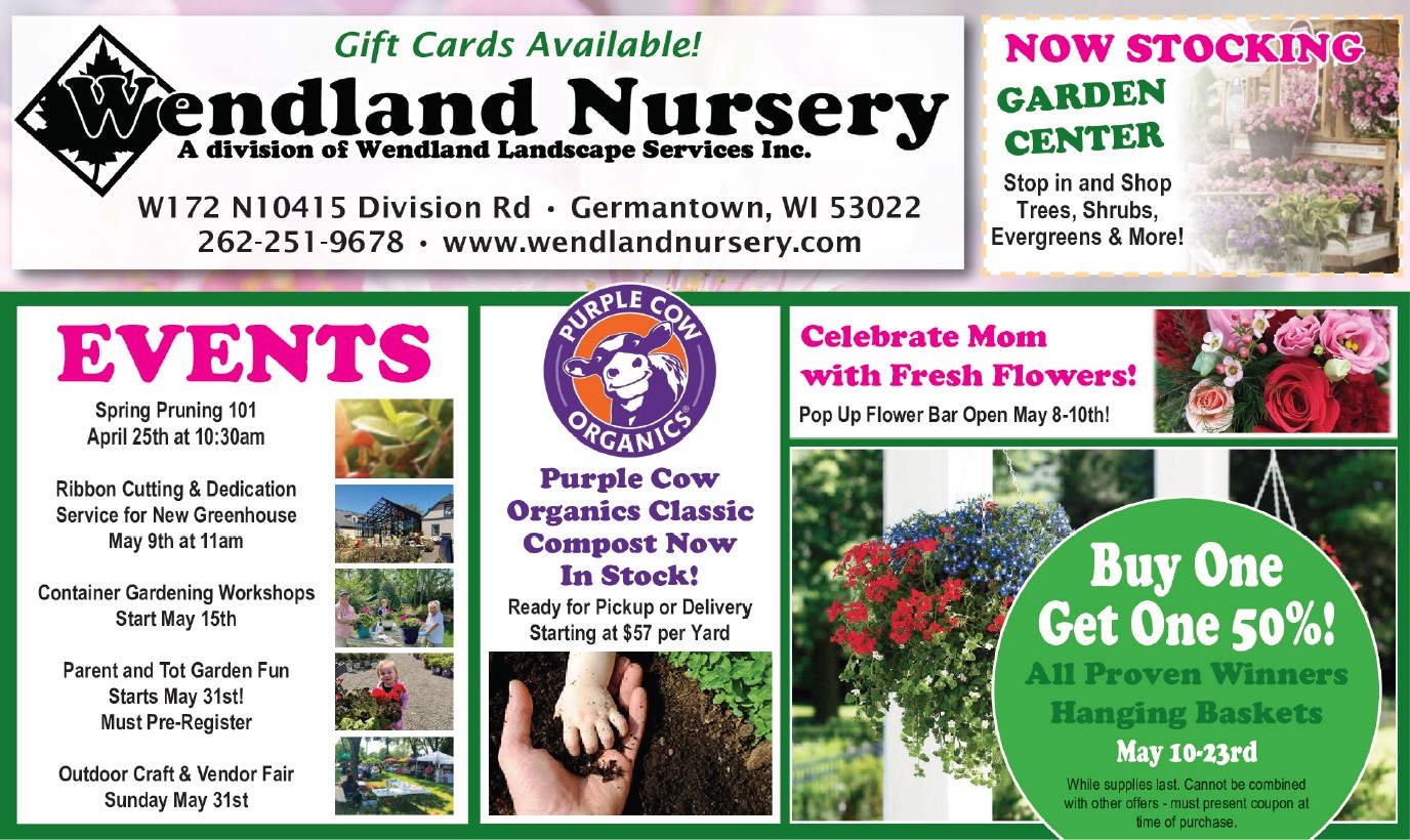 Stay up to date with current sales by “LIKING” us on Facebook @wendlandnursery or follow us on Instagram @wendland_nursery